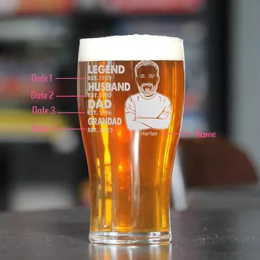 Personalized Picture Beer Glass Chic With Custom Text Perfect Gift For Husband