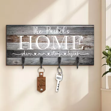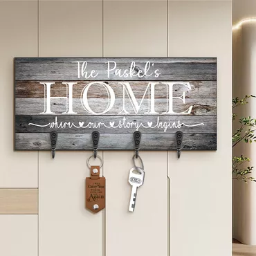 Personalized Key Hanger Home Chic Where Our Story Begins Elegant Design Home Decor Gift For Family