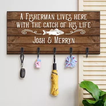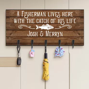 Personalized Key Hanger A Chic Fisherman Lives Here With The Catch Of His Life Creative Gift For Fishing Lovers