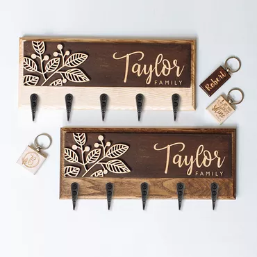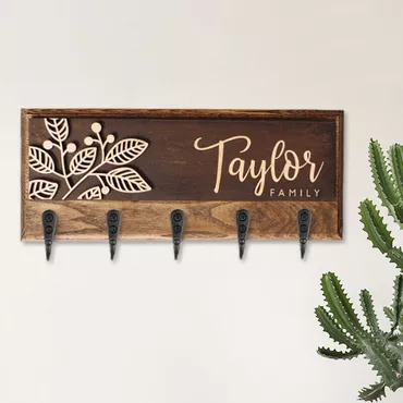 Personalized Key Hanger Engraved Chic Flowers Custom Last Name Design Elegant Home Decor Gift For Family