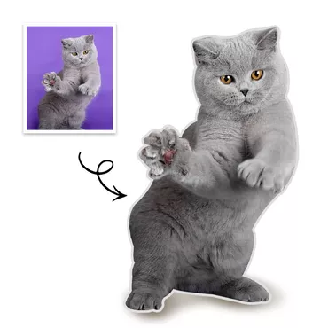 Custom Pet Full Body Chic Photo Pillow 3d Portrait Pillow Grey Cat Gift For Friend