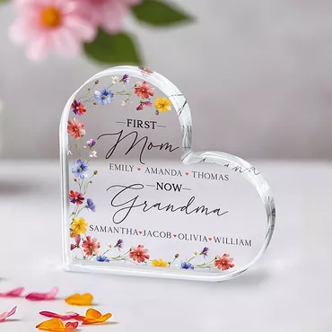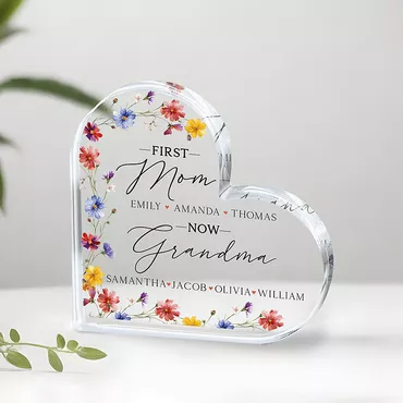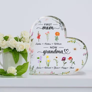 Personalized Heart Shaped Acrylic Chic Plaque First Mom Now Grandma Design Custom Birth Flowers Great Gift For Mother's Day