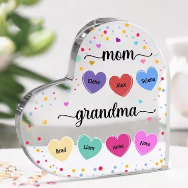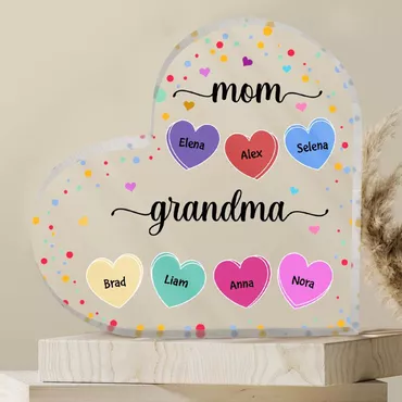 Personalized Acrylic Plaque Colorful Chic Heart Pattern With Custom Name Design Wonderful Gift For Mother's Day
