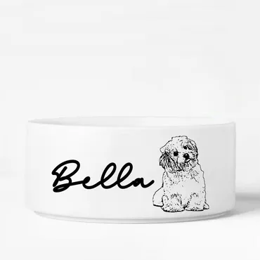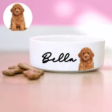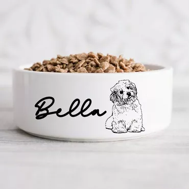 Personalized Pet Bowl With Chic Custom Name And Sketch Photo Warm Gift For Cute Pets