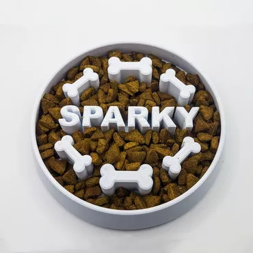 Personalized 3d Printed Pet Chic Slow Food Bowl Custom Name With Bone Fun Gift For Dogs