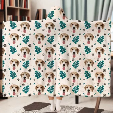 Personalized Picture Wearable Blanket Chic Hoodie With Leaves Pattern Wonderful Gift For Pet Lover