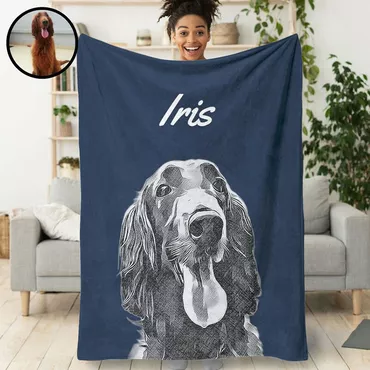 Custom Photo Dog Blanket Chic Pet Photo Blanket Painted Art Portrait Fleece Blanket