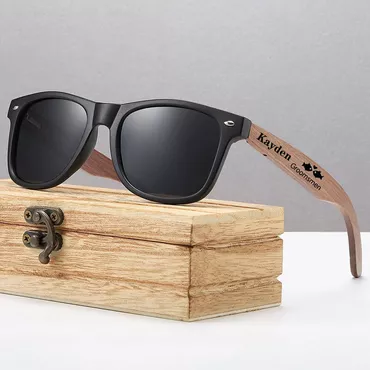 Custom Sunglasses With Wooden Chic Temples Engraved With Dad's Name Holiday Gift For Father's Day