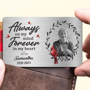 Personalized Aluminum Wallet Card Chic Always On My Mind Forever In My Heart Sympathy Gift For Family