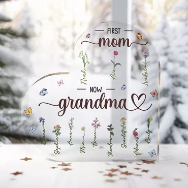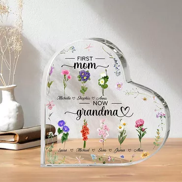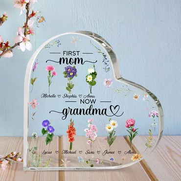 Personalized Heart Shaped Acrylic Chic Plaque First Mom Now Grandma Design Custom Birth Flowers Great Gift For Mother's Day