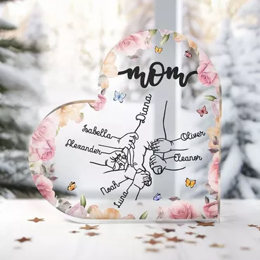 Personalized Acrylic Plaque Hand Chic In Hand With Mom Pretty Pink Flowers Design Great Gift For Mother's Day