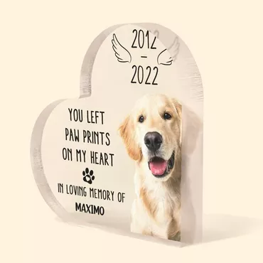 Personalized Heart Shaped Acrylic Chic Photo Plaque Paw Prints On My Heart Memorial Gift For Pet Lover
