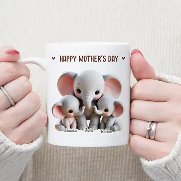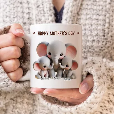 Personalized Name Mug With Chic Elephant Family Pattern Cute Gift For Mother's Day
