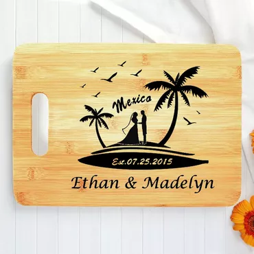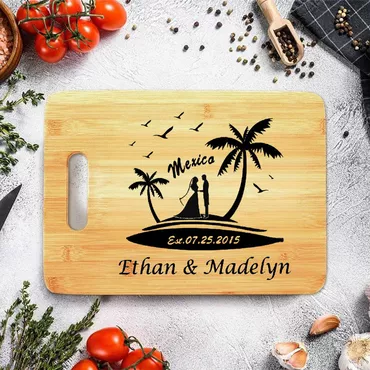 Personalized Name And Date Chic Charcuterie Board With Beautiful Lines Design Best Gift For Wedding