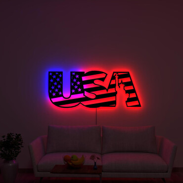 American Flag LED Wall Decor – Rustic Lighted Patriotic Wall Art