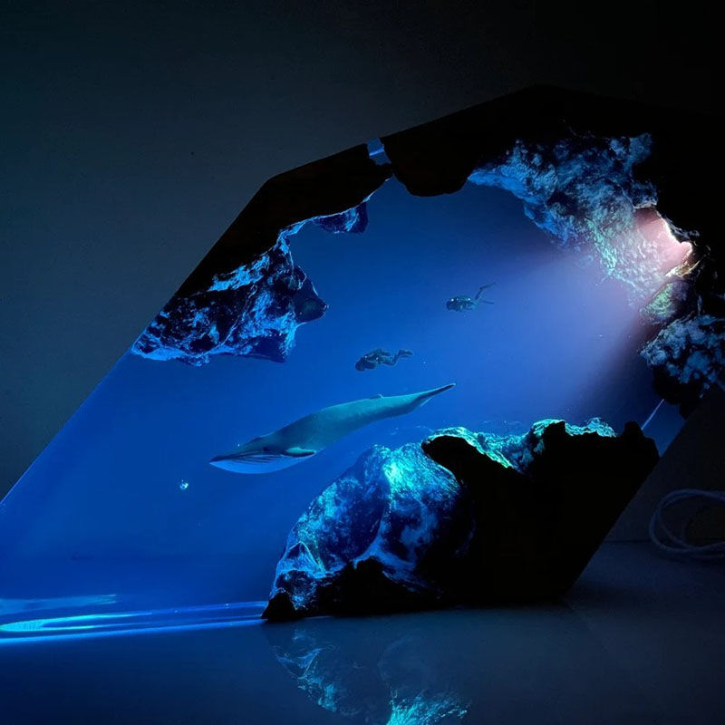 Blue Whale And Couple Chic Diver Resin Night Light Precious Gift For Valentine's Day