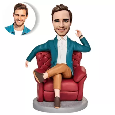 Custom Bobblehead Gift For Chic Man Sitting On Sofa