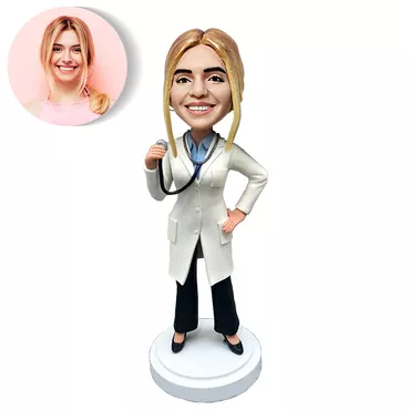 Custom Bobblehead Gift To Chic Female Doctor With Stethoscope