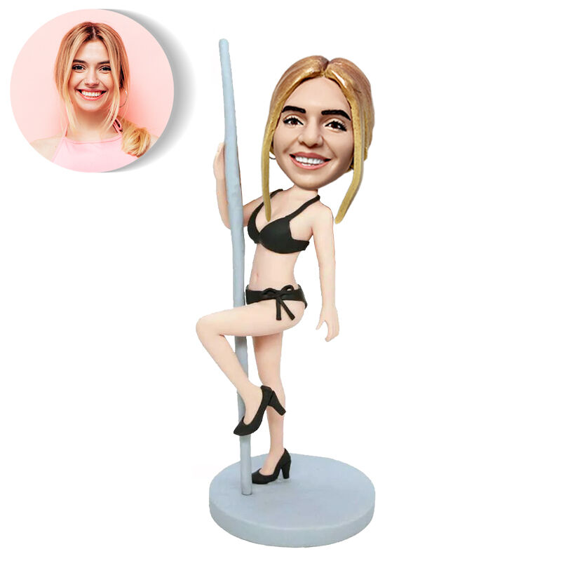 Custom Bobblehead Pole Dancing Chic Lady Giving Her Gift