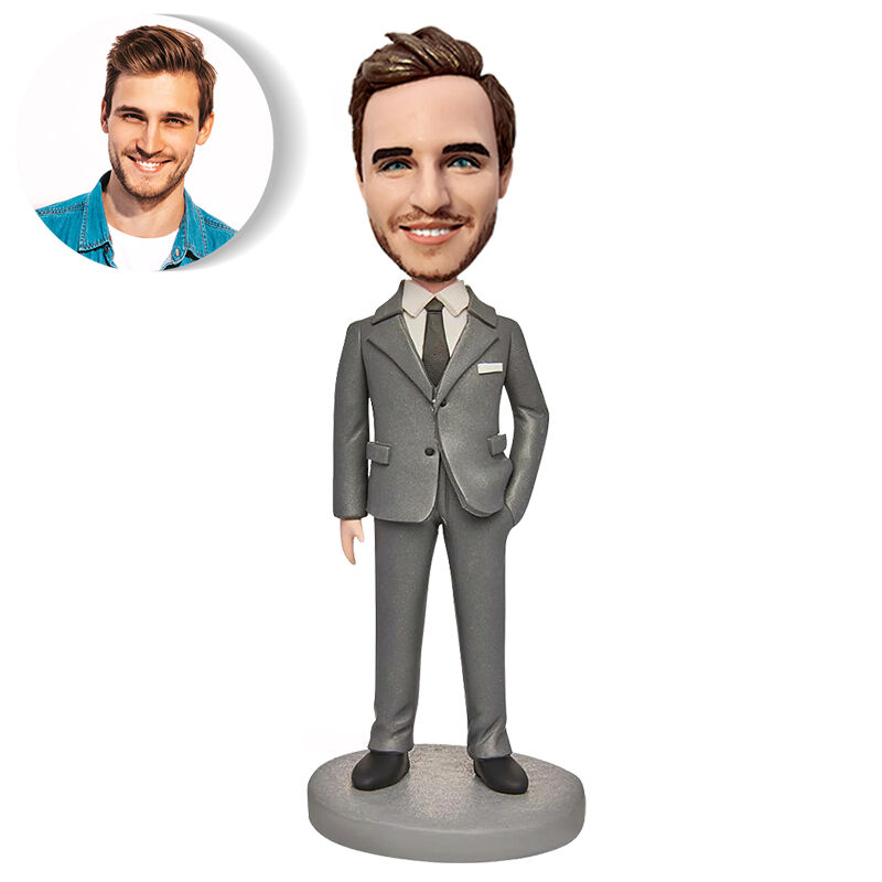 Custom Bobblehead With Gray Chic Suit Gift For Him