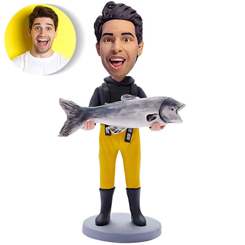 Custom Bobblehead With Man Chic Holding Big Fish Gift For Fishing Enthusiasts