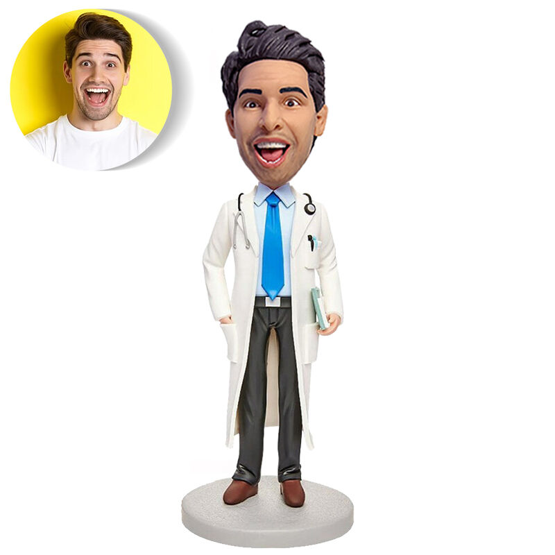 Custom Bobblehead With White Chic Coat Gifts For Male Doctor