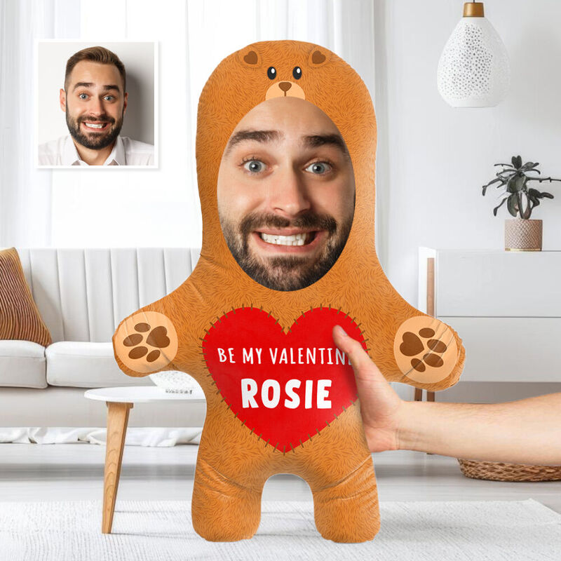 Custom Face Pillow Be Chic My Valentine Teddy Bear 3d Spoof Doll Gift For Her