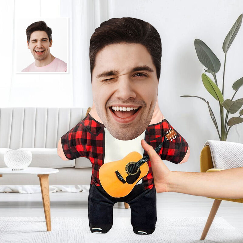 Custom Face Pillow Guitar Chic Guy Idea Picture Cushion Birthday Gift For Him