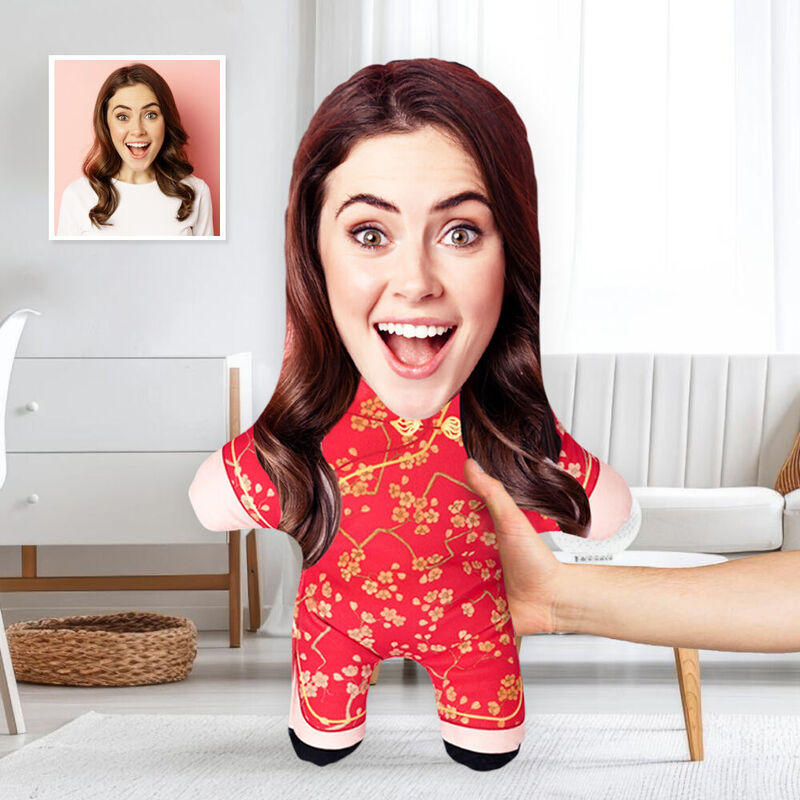 Custom Photo Pillow Chinese Chic Dress Face Pillow New Year Gift For Friend
