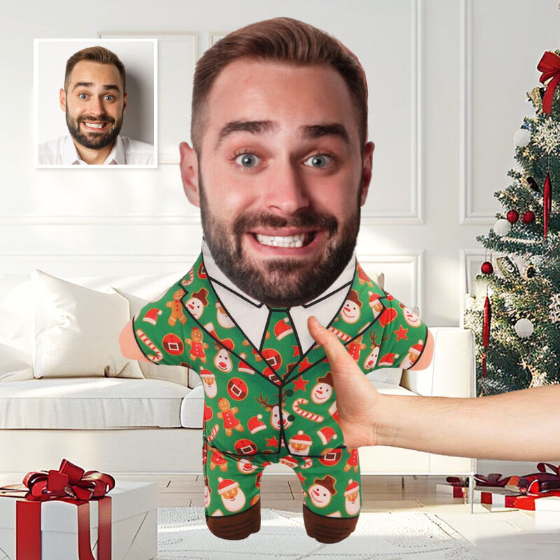 Customized Face Pillow Christmas Chic Suit Green Face Pillow