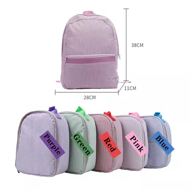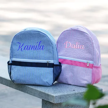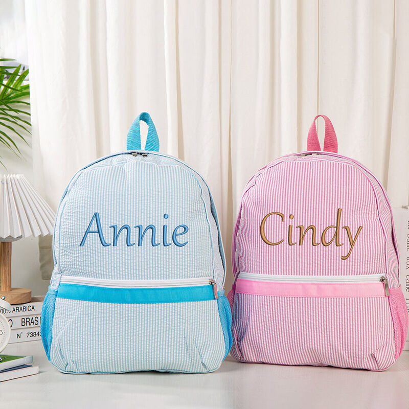 Customized Kids Backpack With Chic Embroidered Name Seersucker School Bag For Students