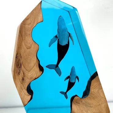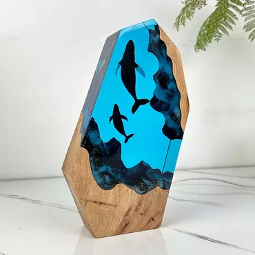 Mother Child Humpback Whales Chic Resin Wood Lamp Perfect Gift For Mama