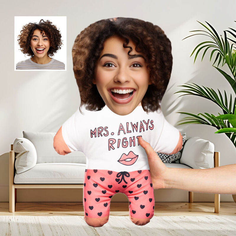 "Mrs Always Right" Custom Face Pillow 3D Photo Pillow Anniversary Gift for Wife