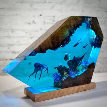Octopus And Diver Resin Chic Wood Lamp Perfect Present For Couples