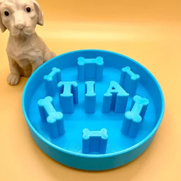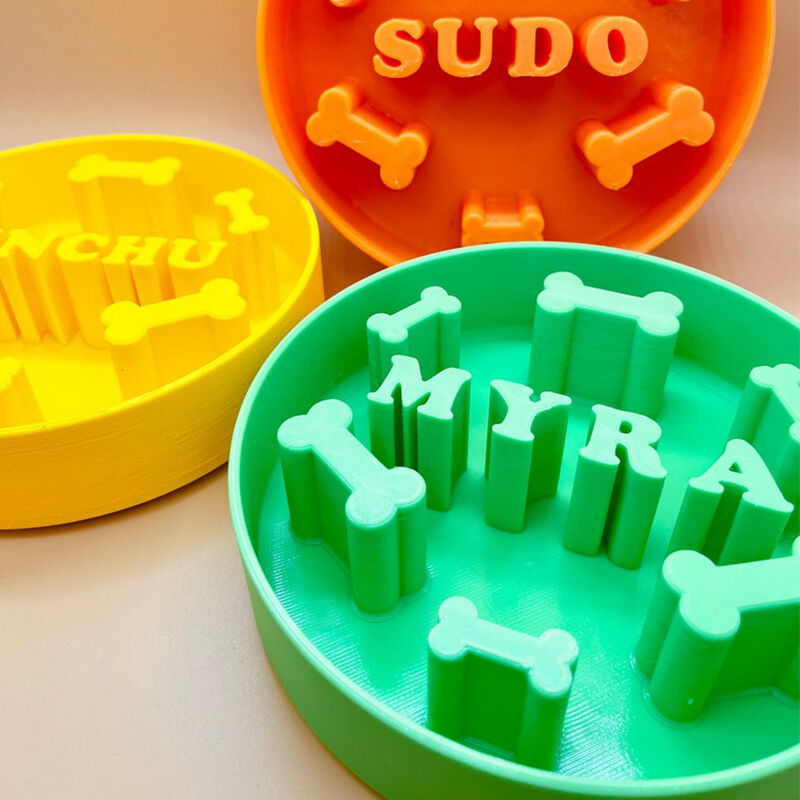 Personalized 3d Printed Pet Chic Slow Food Bowl Custom Name With Bone Fun Gift For Dogs