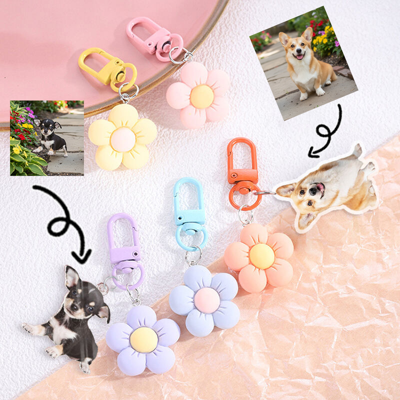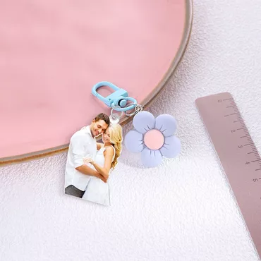 Personalized Acrylic Photo Keychain Chic With Flower Decoration Cute Gift For Girls