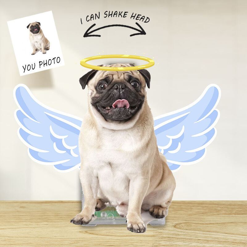 Personalized Bobblehead Acrylic Stand Chic Custom Photo Wings Halo Design Memorial Gift For Pet Lovers