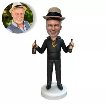 Personalized Bobblehead Of Man Chic Holding Wine Bottles