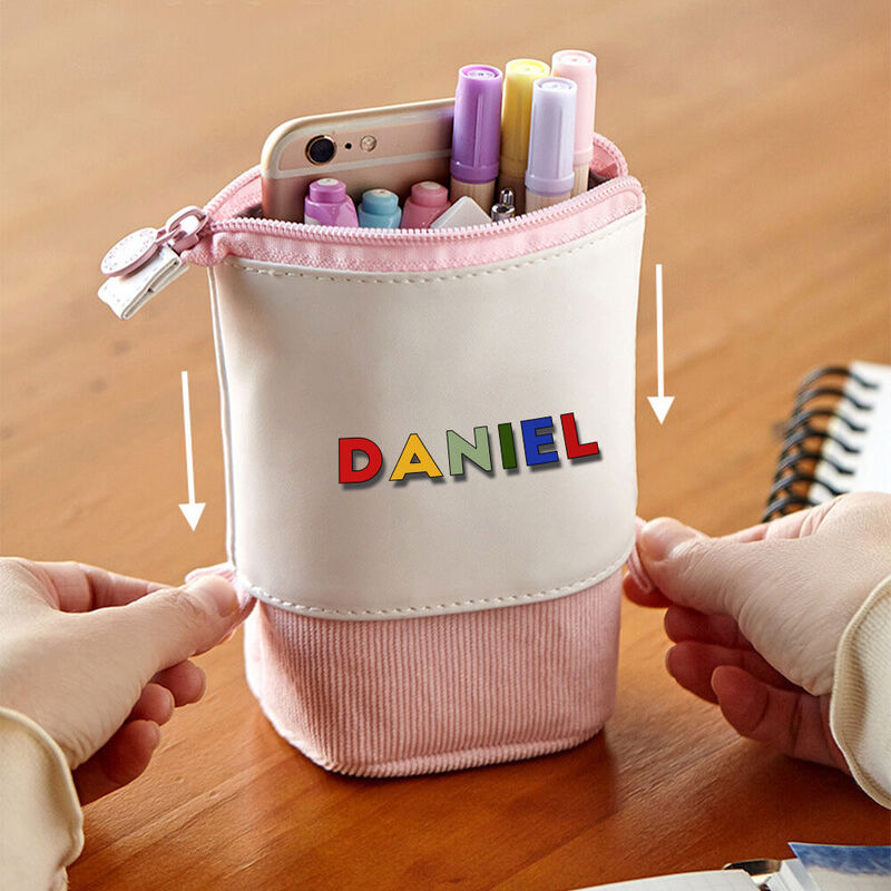 Customize the pencil case with your child's name to create a unique and personalized style, easily identify their school bag, perfect for preschool and nursery, the pencil holder and pencil bag are two-in-one, with a pop-up design for safe access.