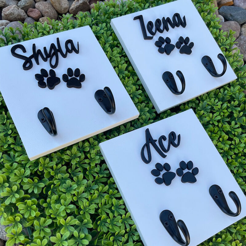 This home pet leash holder will add a warm and personalized decoration to your home environment. It features fine wood and fine hooks that can be customized with a name and a pet touch. This bracket can not only be used to hang dog leashes, but also keys and other items, making it ideal for families with pets.This pet leash holder stands out for its high-quality materials and exquisite craftsmanship. It uses high-quality wood that has been carefully sanded and treated to ensure its texture and durability. The hook parts are exquisitely designed and crafted so that they can both carry weight and present a refined and beautiful appearance.