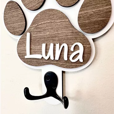 This home pet leash holder will add a warm and personalized decoration to your home environment. It features fine wood and fine hooks that can be customized with a name and a pet touch. This bracket can not only be used to hang dog leashes, but also keys and other items, making it ideal for families with pets.This pet leash holder stands out for its high-quality materials and exquisite craftsmanship. It uses high-quality wood that has been carefully sanded and treated to ensure its texture and durability. The hook parts are exquisitely designed and crafted so that they can both carry weight and present a refined and beautiful appearance.