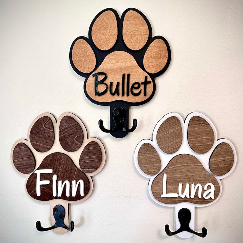 Personalized Dog Leash Holder Chic Customized Pet Name Cute Home Decor