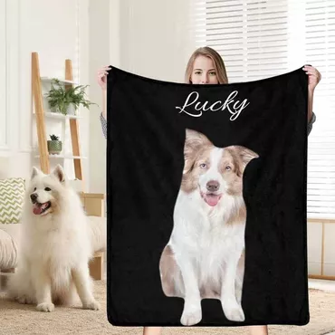 Personalized Dog Portrait Throw Chic Blanket With Text