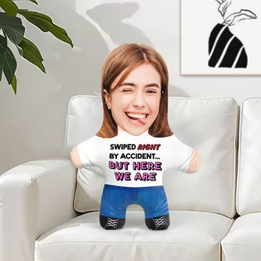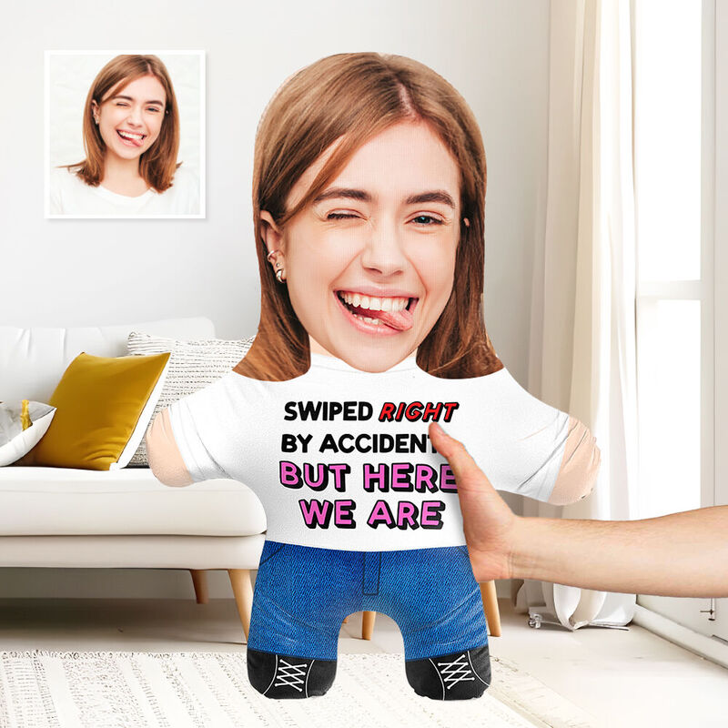 Personalized Face Pillow "Swiped Right by Accident" Couple Gift for Anniversary