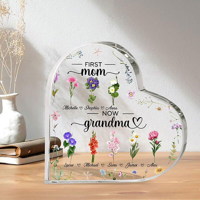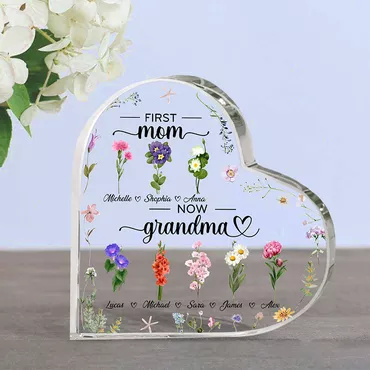 Personalized Heart Shaped Acrylic Chic Plaque First Mom Now Grandma Design Custom Birth Flowers Great Gift For Mother's Day