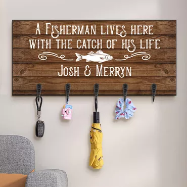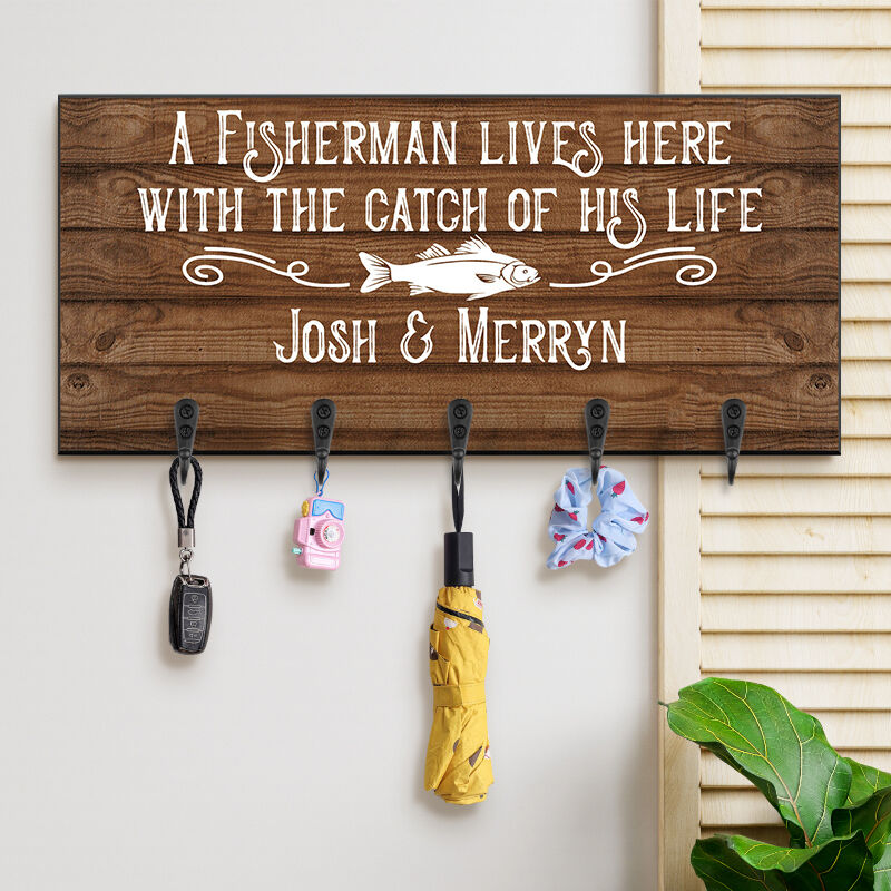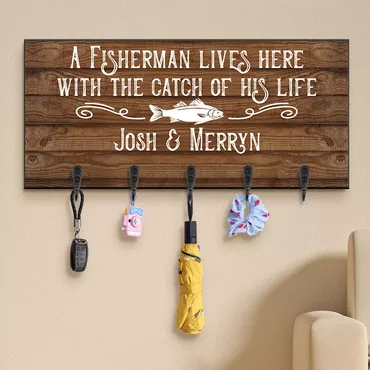 Personalized Key Hanger A Chic Fisherman Lives Here With The Catch Of His Life Creative Gift For Fishing Lovers