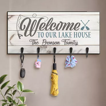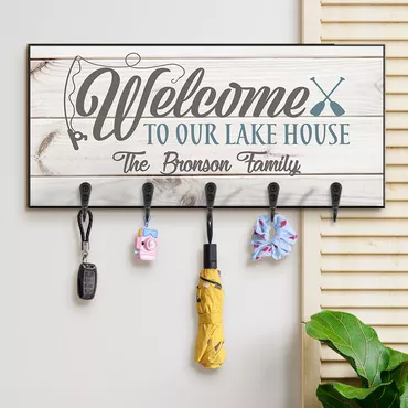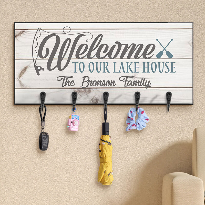Personalized Key Hanger Welcome Chic To Our Lake House Design Attractive Home Decor Gift For Family
