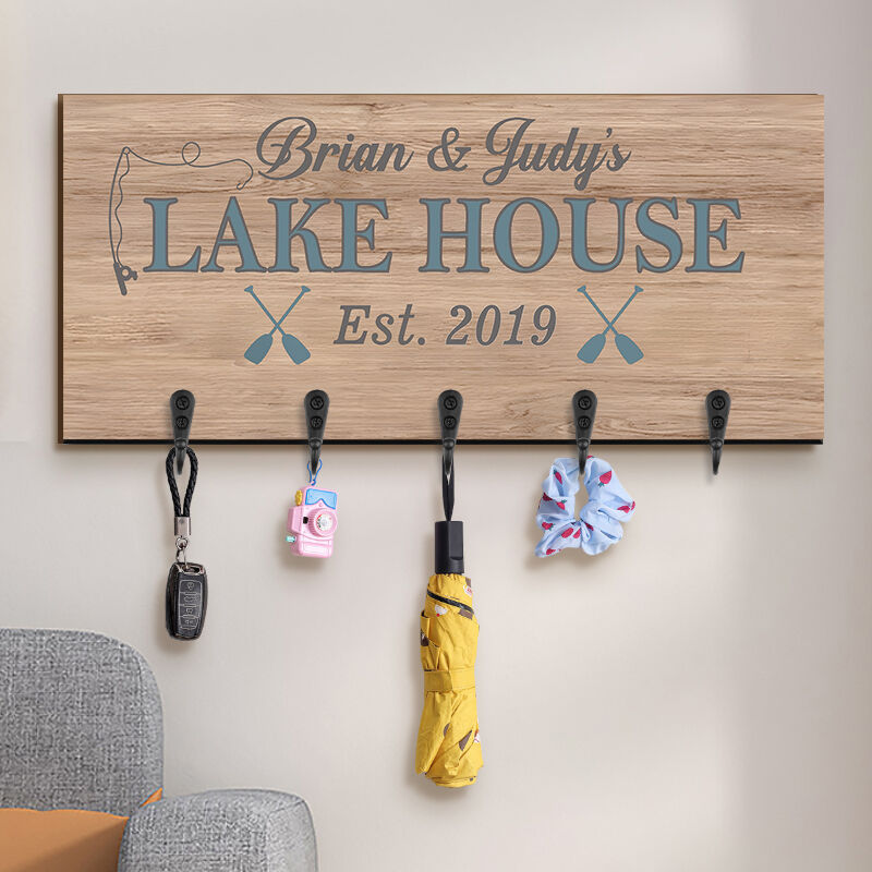 Personalized Key Hanger Your Chic Lake House With Boating Pattern Design Creative Gift For Family