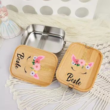 The personalized lunch box is made of stainless steel and wood material, the material is fine, the workmanship is exquisite, and it is easy to wash. Custom Lunch Boxes can be customized with your name and photo on the lid to generate your unique logo and express your personality. It is also the best gift for children back to school.