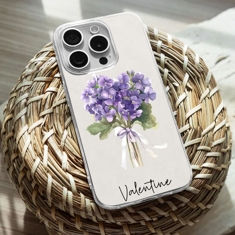Personalized Mobile Phone Case Chic Customized Birthday Flower And Name Warm Birthday Gift